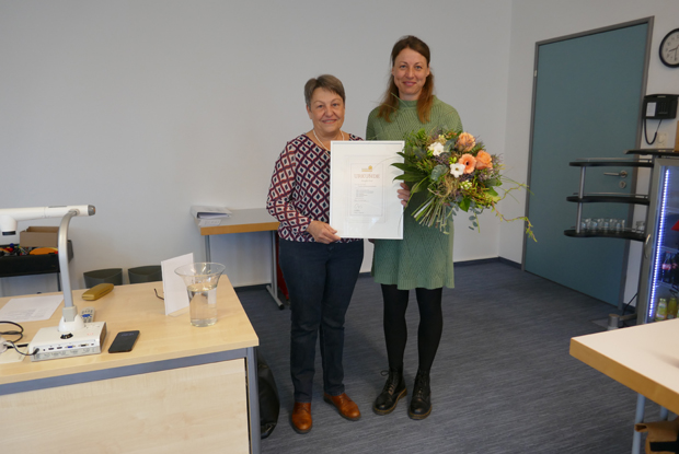 Angela Graf (r.) bekam von Seminarbetreuerin Monika Osterloher ihre Urkunde als