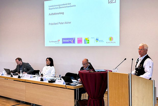 Die Zimmerer der Oberpfalz trafen sich am 21. Januar 2026 in Weiden in der Oberpfalz zur jährlichen Bezirksversammlung. Dazu begrüßten der Präsident des Landesinnungsverbandes des Bayerischen Zimmererhandwerks (LIV) Peter Aicher, Hauptgeschäftsführer Kai Gajewski sowie Bezirksvorsitzender und Präsident des Holzbau Deutschland Instituts Adrian Blödt neben 40 Teilnehmenden aus der Branche auch Reinhold Wildenauer, den Dritten Bürgermeister der Stadt Weiden.